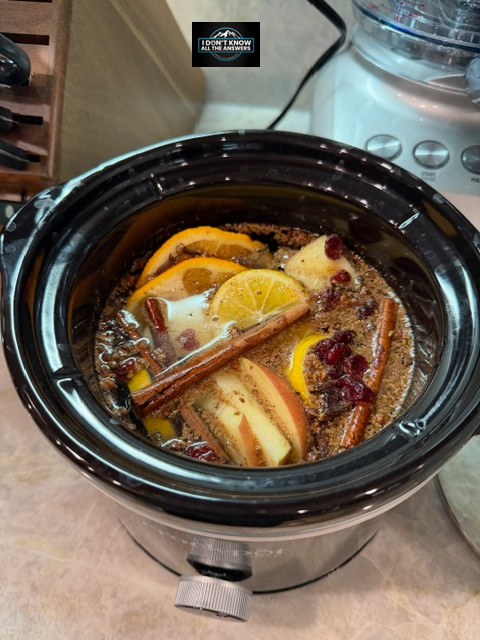 Social media is filled with recipes for simmer pots right now, and I wanted to try it, but I didn’t have all of the ingredients. So I asked AI (ChatGPT) for a recipe using the ingredients I had. A cool use of AI technology. This is the recipe, and I used a small crockpot instead of a simmer pot. The resulting fragrance is soft and not overwhelming
